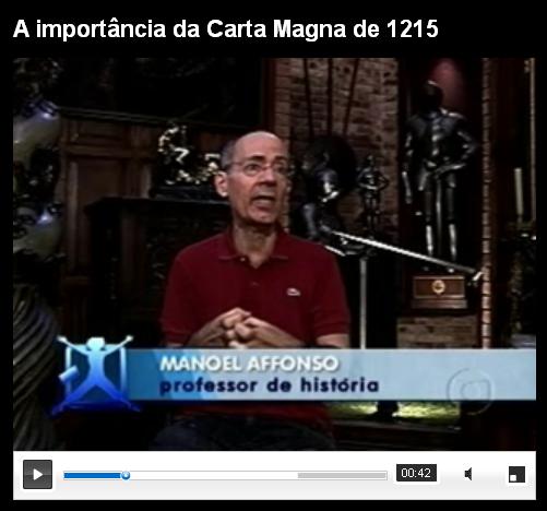 Neste vídeo (clique aqui para assistir), nosso Manoel Affonso de Mello fala para o Bom Dia PE sobre a importância da Carta Magna e como ela serviu de base para o futuro Parlamento Inglês. Escrita em 1215 pelos nobres ingleses, a carta abre um precedente para que todos possam ter liberdade.